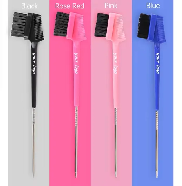 3 1 Edge Control Brush Custom Logo Compact Pintail Double Sided Eyebrow Comb Nylon Hair Tools for Lace Wig Baby Hair Edge